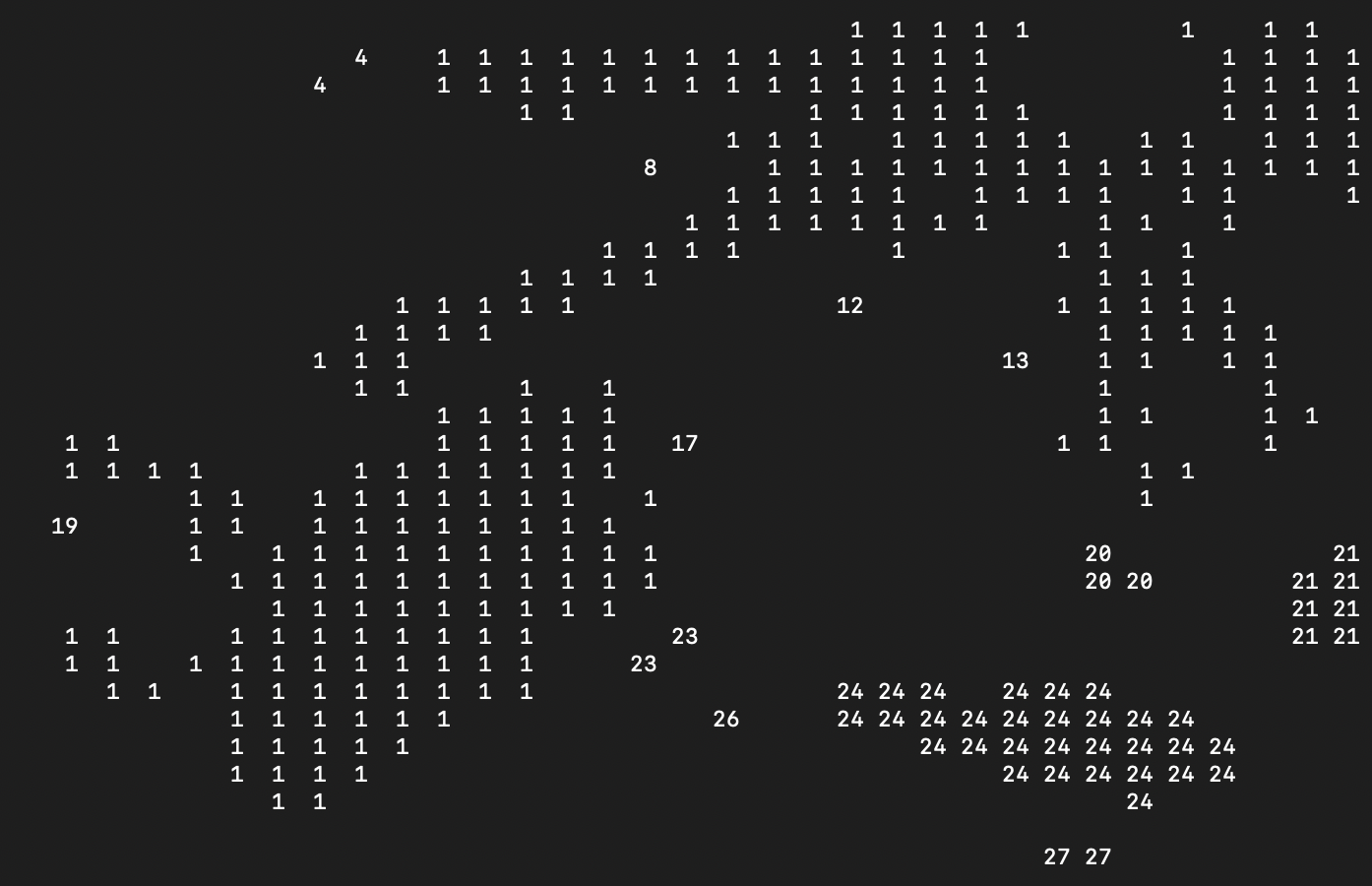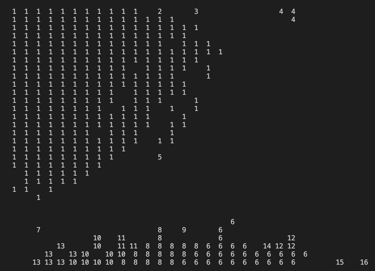 - If the current pixel is part of a connected component (i.e., has a value of 1), assign a unique label to it. The label represents the connected component to which the pixel belongs.